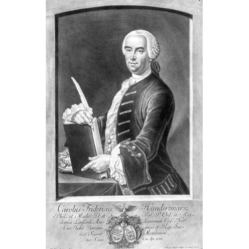2. H. E. gref Ekeblad föreslog också uppå H. K. Höghets befalning Professor Hundertmark i Leipzig til Utländsk Ledamot presenterandes också en tractat de Sulphuris anodyni Specie ex vini vitriolique Oleis commiztis oriunda. som H. Hundertmark sammanskrifvit och tilsändt Academien. I underdånigt följe häraf kommer til bemelte professor kallelse bref at afgå.
