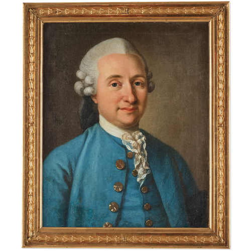 Odhelius avporträtterad i blå dräkt av Ulrika Pasch ca 1775.